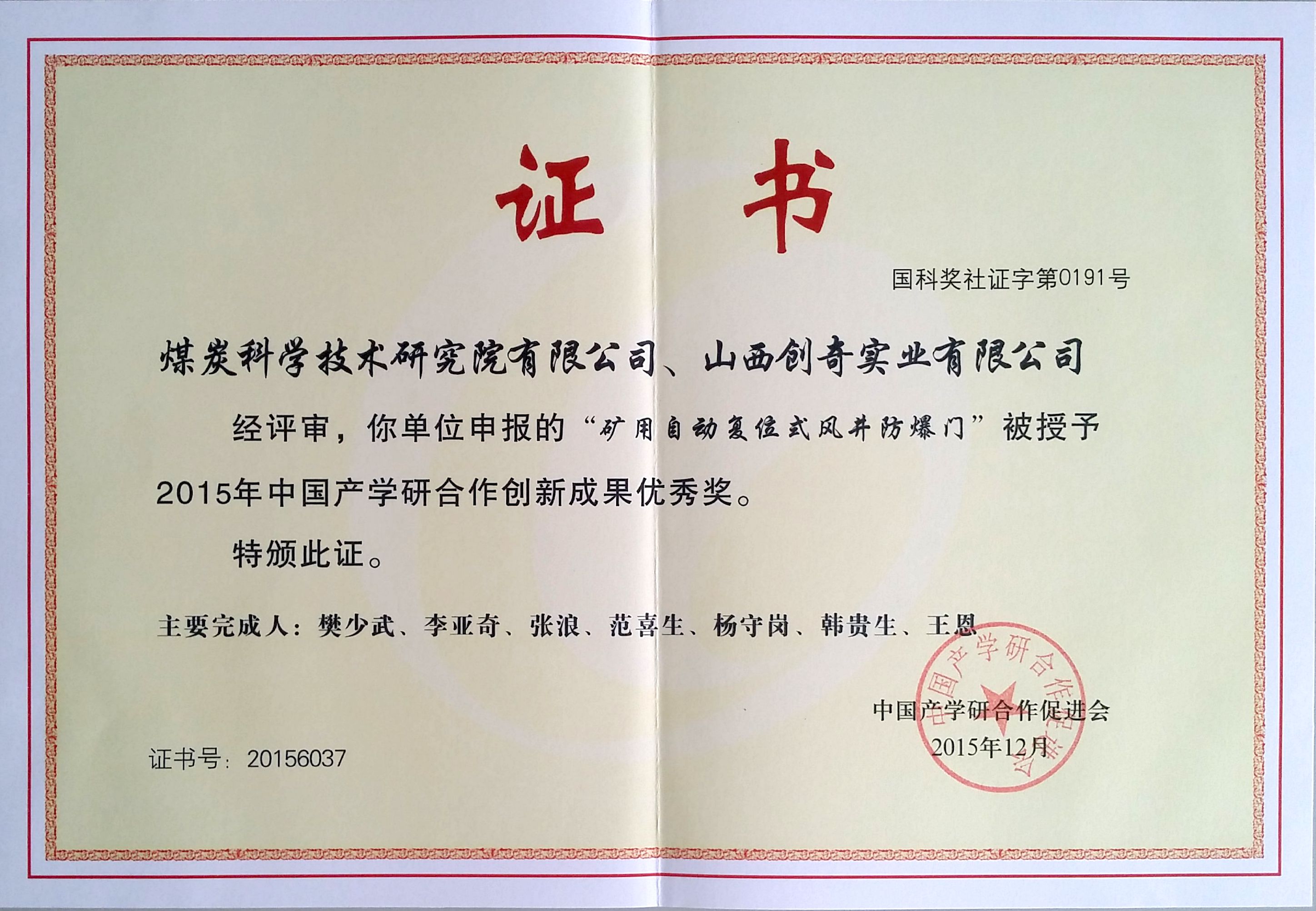中国产学研合作创新成果优秀奖