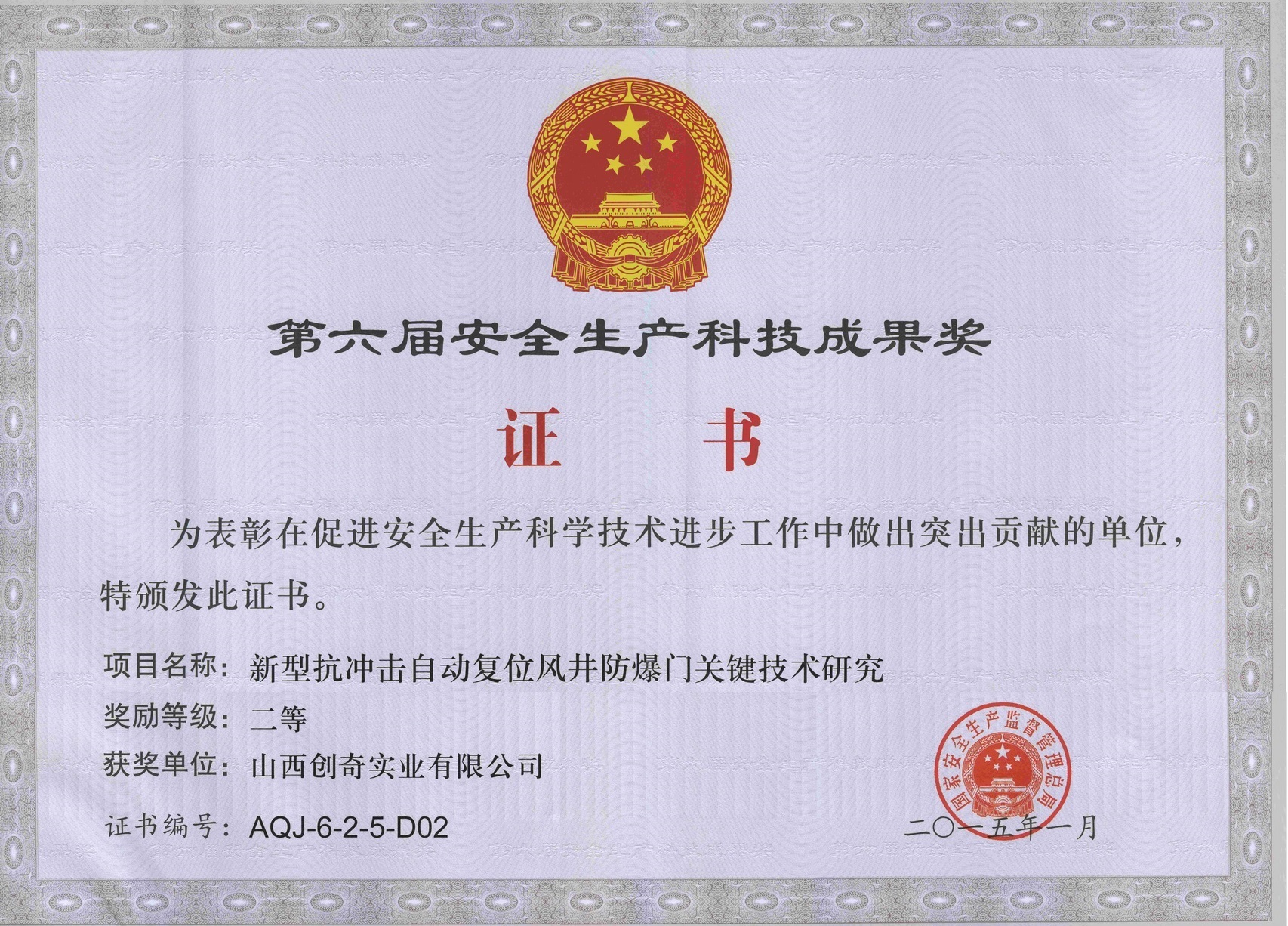 第六届安全生产科技成果奖